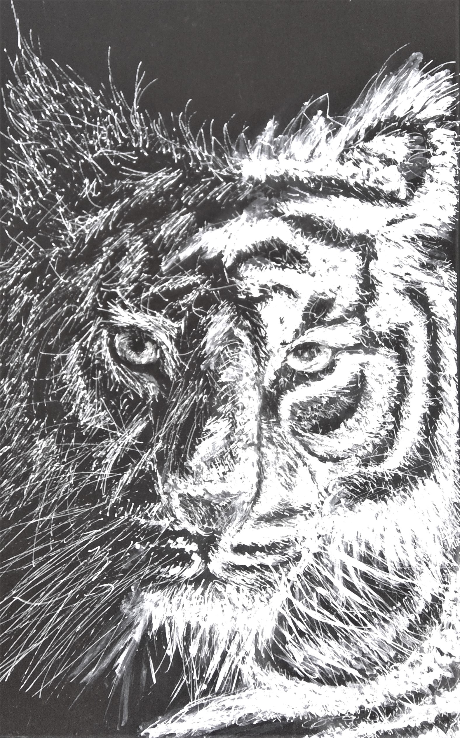 Tiger Tiger, 2017, Correction fluid and mixed media, 18 x 24″ Posted on February 7, 2018April 5, 2018
